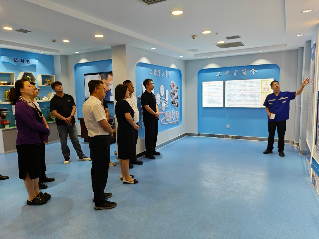 8月6日上午9时,williamhill英国中文官网一行在全国劳模白芝勇的带领下,参观了白芝勇劳模创新工作室,该工作室于2013年7月成立,2014年8月和2015年10月,工作室先后顺利通过陕西省人社厅和国家人力资源和社会保障部的验收,被授予“国家级技能大师工作室”称号。全国劳模白芝勇从团队构成、人才培养、科研成果创新、社会影响和贡献等方面对工作室进行详细介绍。