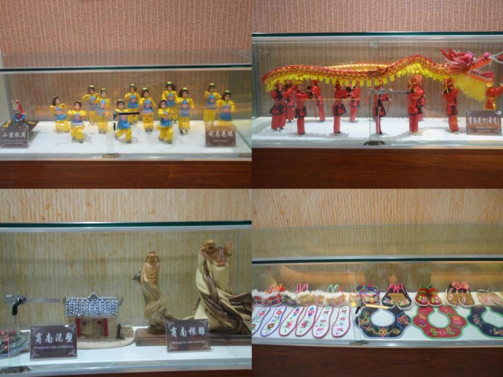 实践队一行前往商南县文化馆非遗展厅,雷馆长详细介绍了馆内展出的非物质文化遗产。从历史悠久的花灯、试马花棍,到独具特色的商南绒绣、香包,再到技艺精湛的手工制茶、竹编、石艺等,每一件展品都承载着商南人民世代相传的智慧与汗水,展现了商南县深厚的文化底蕴和艺术魅力。除此之外,实践队还在雷馆长的带领下走进了一间特别设置的展厅,其中陈列的非遗文化作品无一不透露着商南县人民的匠心独运与勤劳智慧。这些作品,从构思到完成,全程由当地匠人亲手打造,每一件都蕴含着深厚的地方特色和情感寄托,让人深切感受到非遗文化在民间生生不息的生命力。