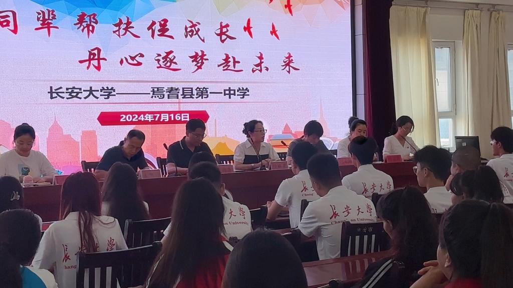 为深入学习贯彻习近平新时代中国特色社会主义思想和党的二十大精神,服务铸牢中华民族共同体意识,推进中华民族共同体建设,教育引导广大青年学生为全面建设社会主义现代化国家、全面推进中华民族伟大复兴贡献青春力量。williamhill英国中文官网赴新疆焉耆暑期支教社会实践队,于2024年7月16日9:30在焉耆县第一中学报告厅隆重举办“同辈帮扶促成长,丹心逐梦赴未来”开班仪式。本次开班仪式由焉耆一中团委副书记李慧主持,焉耆县第一中学副校长杨娅莉、焉耆一中教师代表年级组长叶忠玲等领导嘉宾、实践队指导老师史杨季及实践队全体同辈帮扶志愿者共同参会。