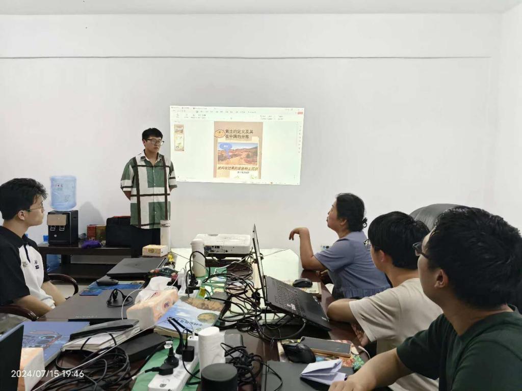 会议开始,队长王颢针对后续科普宣讲日程安排以及实地考察具体情况进行人员分工安排,合理划分黄土相关展板的制作以及宣讲,实践队各成员根据自己分配的具体任务,迅速展开工作。