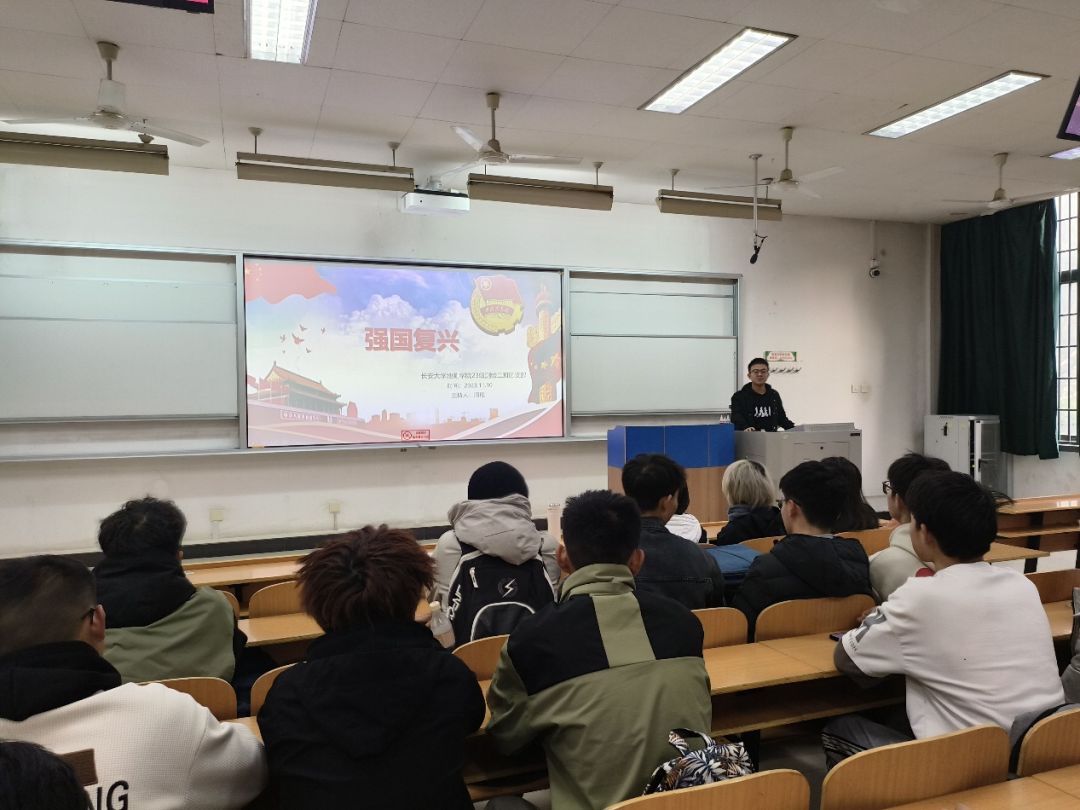 为深入学习贯彻习近平新时代中国特色社会主义思想,推动强国复兴伟大战略的实施,提高大学生的政治思想觉悟激发青少年奋斗意识、拼搏意识,发挥青少年在强国复兴中的主力军作用。williamhill英国中文官网2023260402班团支部于11月10日在渭水校区WX4104教室开展了以“强国复兴”为主题的团课。会议由团支书周程主持,402全体团员青年参与了本次会议。