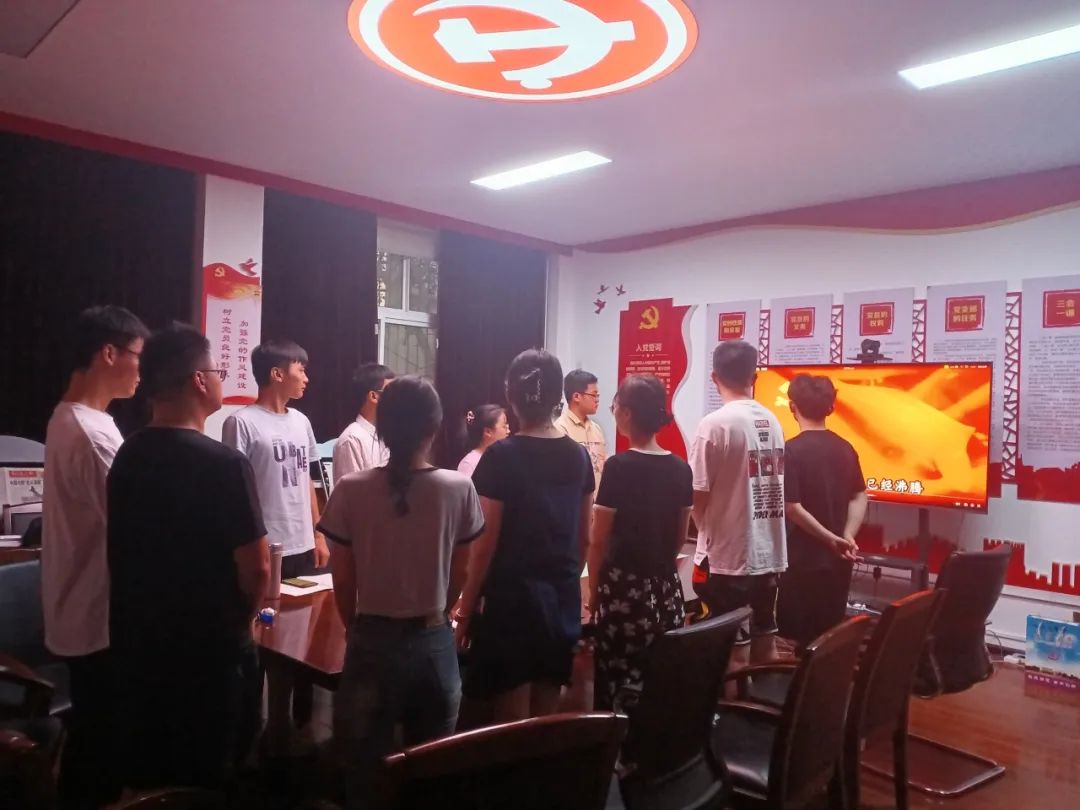 首先,全体成员起立,庄严肃穆地一起奏唱国际歌。奏唱完毕,温瑞祥同志带领大家一起学习主题教育相关材料。