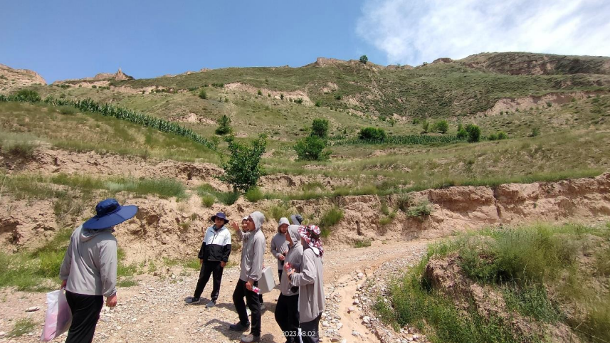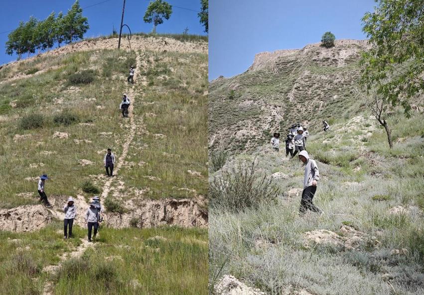 暑假社会实践队在科考队庄建琦教授的带领下从甘南藏族自治州共和市出发,驱车近三个小时到达临夏回族自治州东乡县果园乡巴榭河北岸的洒勒山滑坡。庄建琦教授就洒勒山滑坡发生的“三怪”展开介绍了洒勒山滑坡的发生机理。讲解完成后与实践队员们一起飞无人机采集影像资料,并结合影像资料为实践队员们进一步讲解黄土滑坡的地貌特征。为了增强队员们对黄土滑坡的认识,庄建琦教授带领实践队员们徒步到滑坡体上开展调研学习,通过庄老师对滑坡形成机理的讲解以及徒步考察中与实践队员的互动交流,实践队员对黄土滑坡形成的成因机理有了更深入的认识,对课内所学的专业知识有了更深入的理解。