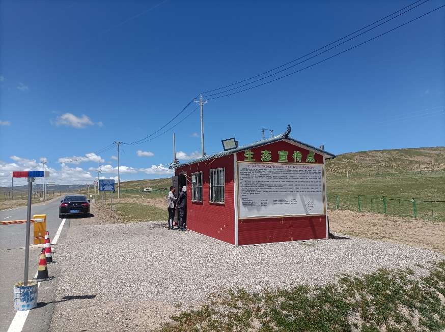 实践队一行于30日中午抵达三江源国家公园黄河源园区。三江源国家公园是中华人民共和国设立的第一个国家公园,它位于中国青海省,涵盖了三江源地区的核心保护区和两个重要支流的源头。其中,黄河源园区是三江源国家公园内的一个重要园区,涵盖了黄河的发源地区域。园区对于外来人员进行严格限制并设立生态保护宣传点,未办理相关手续者全部禁止进入。园区内部水波荡漾、绿意盎然,野生动物悠然自得觅食。此外,园区内设立了自动气象监测站用于实时监测园区内的气象状况。对于园区内退化的草场,管理局采用人工种植方式进行恢复,保障黄河源头的生态环境质量。