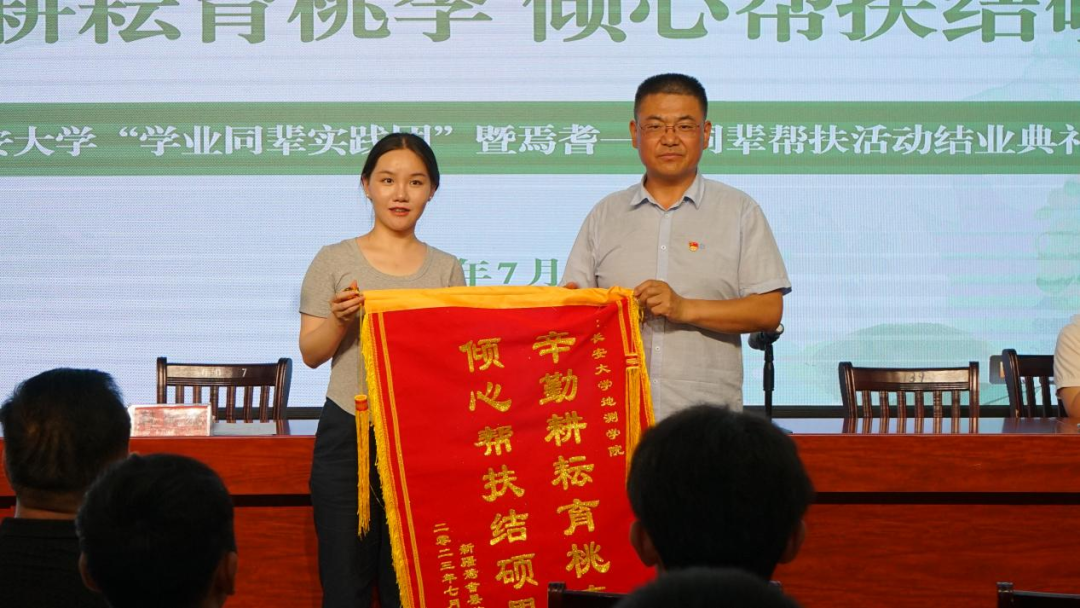 结业典礼上,焉耆一中党委书记孟彦君代表焉耆一中党委领导班子向WilliamHill中文官方网站同辈帮扶团队赠送了写着“辛勤耕耘育桃李,倾心帮扶结硕果”的锦旗,以表达焉耆一中对williamhill英国中文官网“学业同辈实践团”的感谢。