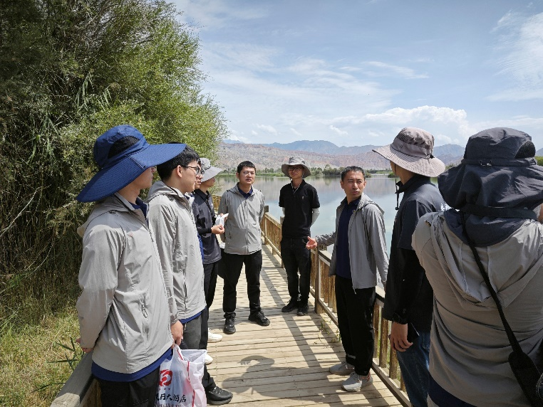 随后,实践队又参观了贵德黄河清湿地公园。该公园依托黄河森林公园和湿地而建,东起尕让乡阿什贡村,西至拉西瓦水电站,全长28000米,南至西久公路,北达原宁果公路,平均宽2100米,总面积8.32万亩。在独特的地理和自然环境作用下,形成了美丽壮观的溶蚀地貌和丹霞地貌。科考队李培月老师在考察中提到:“对于黄河上游生态资源不仅要进行保护,同时在生态承载量允许的情况下进行适度的开发,让人们能够真正地亲近自然,进而热爱自然,从而保护自然”。