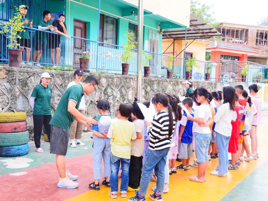 南江小学学生以一、二年级为主,在校人数不足二十人,学生普通话规范程度普遍不高。因此,根据学生的年龄分布,实践队员提前制定了教学方案,确定将《三字经》和《弟子规》作为主要诵读内容,朗朗上口且具教育意义。另外,实践队员推荐经典名篇,讲述传统故事,开展了诗歌朗诵、普通话比赛等活动,与孩子们学唱了歌曲《送别》《国家》以及《共产主义接班人》。通过诵读爱国诗歌、名家名篇引导儿童热爱中华文化、增强文化自信、培养爱国情怀,在寓教于乐中引导农村少年儿童阅读中华传统经典、红色经典和当代经典阅读,在阅读中增强热爱中华文化的自觉、增强文化自信,铸牢中华民族共同体意识。