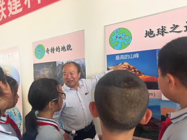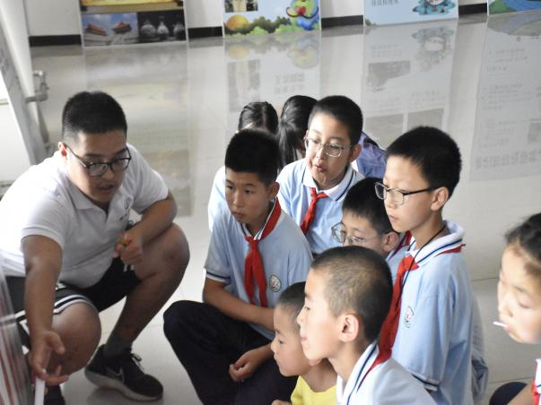 展板内容分为“认识地球”和“水的科普”两部分,由暑期社会实践队七名队员进行讲解。在讲解过程中,为了提高积极性,帮助同学们更好的理解所讲解的科学知识,讲解员设置了趣味小问题,并给正确回答问题的同学奖励小奖品。