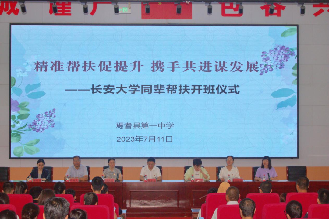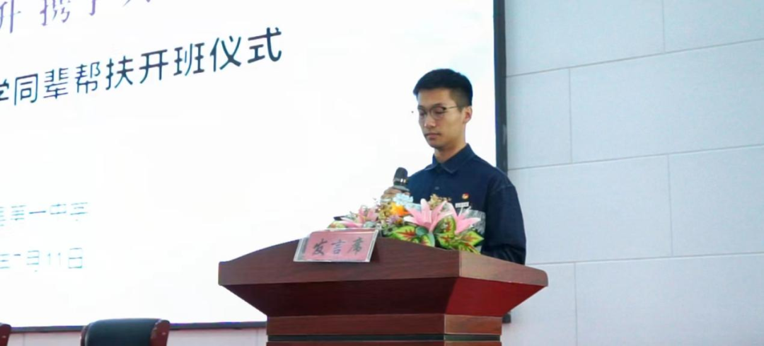 7月11日中午12:00,焉耆第一中学隆重举行了同辈帮扶活动开班仪式,WilliamHill中文官方网站附属学校党总支书记郭自立、附属学校副校长谌亚芳、焉耆县第一中学党委书记孟彦君等领导嘉宾、同辈帮扶志愿者团队、帮扶团队成员及家长共同参加了开班仪式。仪式上,实践队志愿者代表王博表态发言道,我们将倾尽全力做好同辈教育帮扶,以期帮助焉耆学子提升学业水平、丰富学习技巧、培塑理想信念、明确人生规划,在与焉耆学子交朋友的过程中增学识、促融合,挺膺但当时代使命,携手共画民族团结进步壮美画卷。