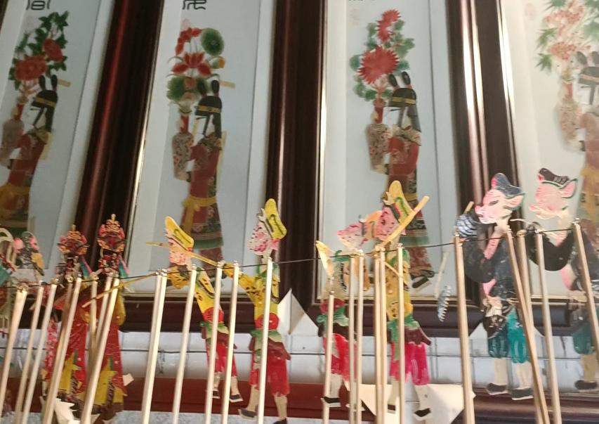 实践队还了解到皮影在选材、工具使用、制作方面也尤为讲究,皮影的制作大多选用牛皮作为原材料,制作一套皮影需要花费2~3天的时间,因此精美细致的皮影的制成凝结着匠人们丰富的智慧。在访谈中,当谈及皮影戏发展现状与继承的时候,张师傅遗憾的说到:“现在的皮影跟以往不同了,现在都没人学。” 这句话道出了目前皮影的传承与发展面临困难,还有皮影制作传承的问题,“很多制作皮影的手艺都失传了,做这些皮影的人也很少”。张师傅一边说,一边向实践队员展示夹在厚纸板里的宝贵的皮影,“他这原来还有很多人做,现在做的这些很多都成纪念皮影,这种已经做不动了”。接着,在访谈后团队成员参观了皮影坊,看着墙上陈列的一个个生动且精美的皮影,都蕴含着手工匠人对皮影的热爱。