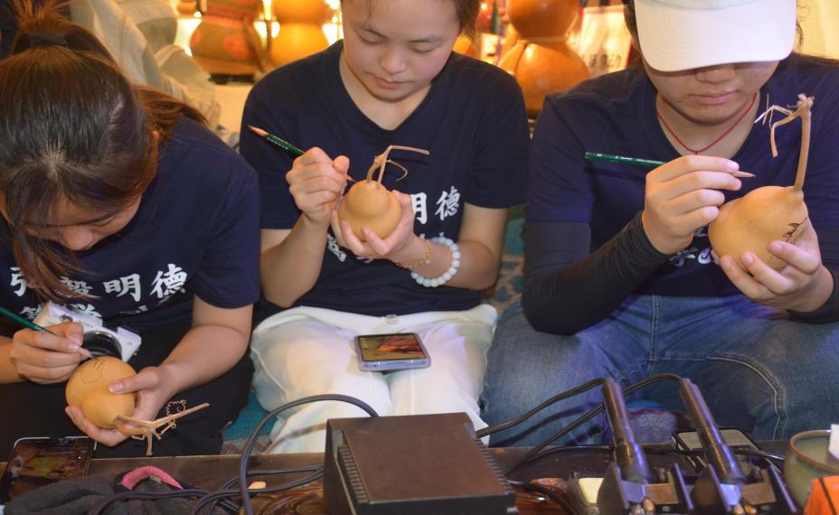 图五 团队成员亲自制作葫芦画