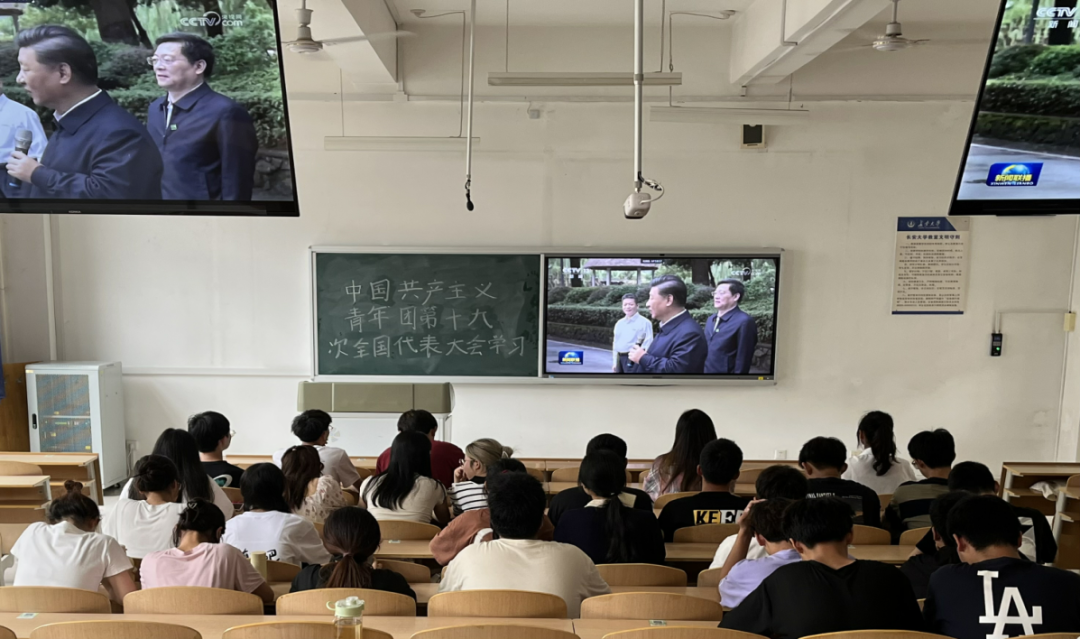 活动伊始,全体团学组织认真观看了新闻联播中关于召开本次中国共产主义青年团全国代表大会的详细介绍和全国各地共青团员预祝本次中国共产主义青年团全国代表大会顺利召开的视频,通过视频的学习大家了解到习近平总书记着眼党的事业薪火相传、中华民族永续发展,高度重视青少年和共青团工作,对广大青少年健康成长寄予亲切关怀和殷切期望。本次中国共产主义青年团全国代表大会既是青春的盛会,更是青春的号角。习近平总书记指出:“当代中国青年生逢其时,施展才干的舞台无比广阔,实现梦想的前景无比光明”,寄望中国发展要靠广大青年挺膺担当。新时代青年要牢记习近平总书记的教诲,更加自信自强、担当奋斗、团结一心、开放包容,不断增强做中国人的志气、骨气、底气,努力做有理想、敢担当、能吃苦、肯奋斗的新时代好青年,用实际行动践行“请党放心、强国有我”的青春强音,让青春在全面建设社会主义现代化国家的火热实践中绽放绚丽之花。