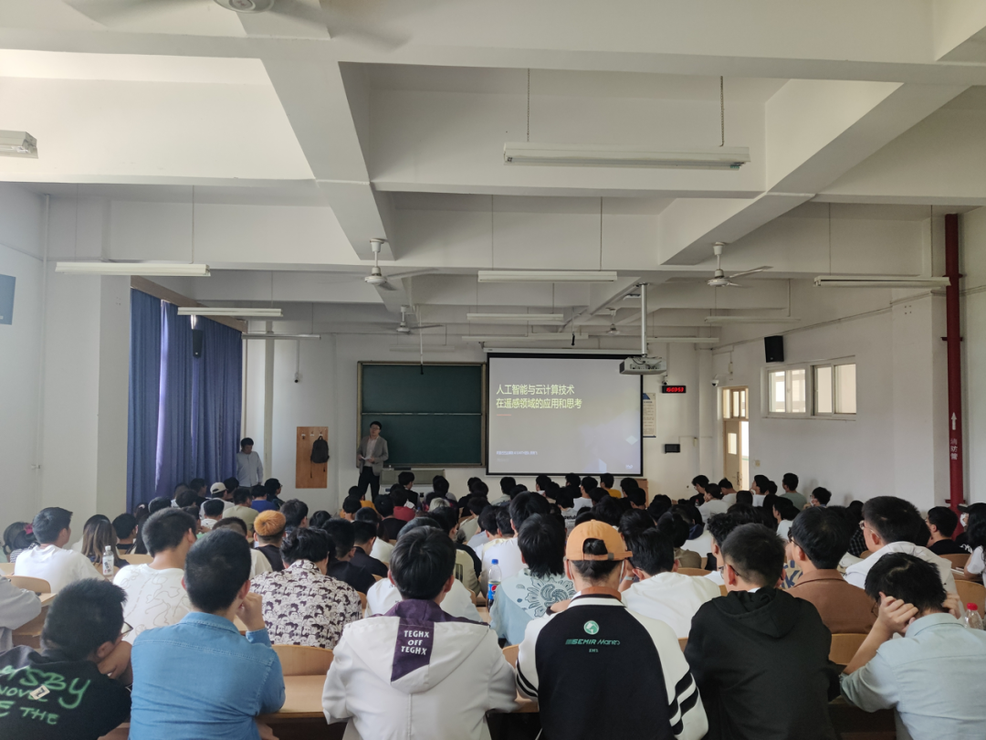 为深入学习宣传贯彻党的二十大精神,全面落实立德树人根本任务,提高学生专业素养,使学生进一步了解测绘学科专业前景,做好学业规划,williamhill英国中文官网于2023年4月15日下午15:00举办了“人工智能与云计算技术在遥感领域的应用和思考”主题讲座。主题报告邀请到阿里巴巴达摩院产品解决方案架构师薛腾飞博士为主讲,2022级测绘类本科生近两百人参会。本次讲座由测绘科学系教师余琛教授主持。