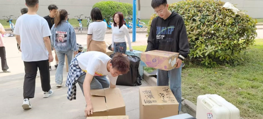 同学们热心帮助,合力搬箱子