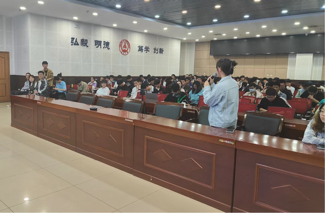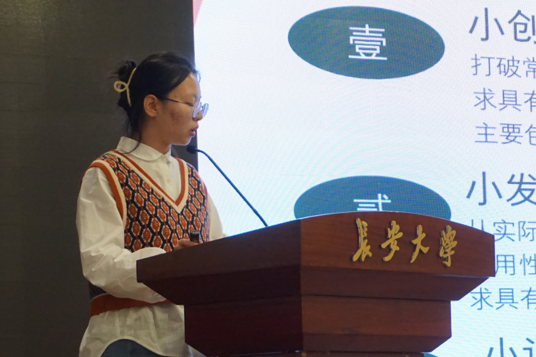 程文清就赛程赛制向同学们展开宣讲,从参赛要求、五小创作品要求(即小创意、小发明、小调研、小论文、微创业)、大赛流程、奖项设置和其他说明五个方面对五小创赛事进行了详细的介绍,并提醒同学们一些重要的时间节点。