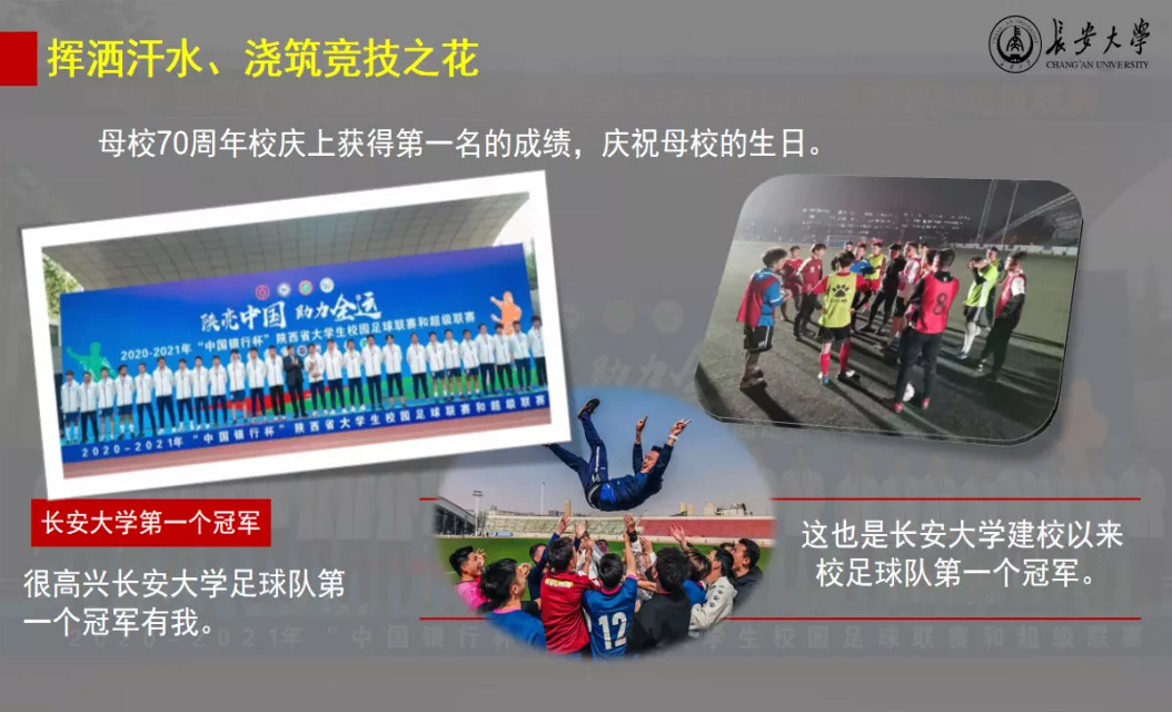 "足球伴我成长,给了我前行的力量"艾合买提江对足球有一种偏执的热爱。刚入学没多久,他代表williamhill英国中文官网参加了2020届新生杯,通过足球,他遇见了不同民族却志同道合的伙伴。在新生杯中,他们相互熟悉、共同磨合、一起训练,最终取得了第二名的好成绩。之后,通过学长的引荐加入了WilliamHill中文官方网站足球队这个大家庭。2021年4月,他们迎来了"中国银行杯"陕西省大学生足球联赛,经过层层比拼和淘汰,最终冲进决赛,并在决赛中勇摘桂冠,成为WilliamHill中文官方网站建校以来校足球队第一个省赛冠军,以朵朵汗水之花,为母校70周年校庆献礼。翌年5月,他代表学院参加WilliamHill中文官方网站第十六届阳光体育运动足球联赛,夺得了williamhill英国中文官网第一个冠军。传承体育竞技精神,展现长大学子奋进风貌,艾合买提江用汗水浇灌足球之花,收获了绿茵场上的累累果实。