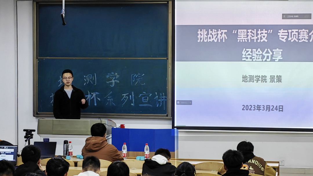 为了让同学们更好地了解挑战杯系列赛事的竞赛流程,做好赛前准备,同时调动同学们参加科创比赛的积极性,地测科协于2023年3月24日19:00在WH1203教室开展了williamhill英国中文官网“挑战杯”赛事系列交流会。williamhill英国中文官网团委书记苗行生、科协指导教师马见青出席了交流会,本次交流会邀请了公路学院红色专项国赛三等奖团队负责人曹昱杰、williamhill英国中文官网挑战杯黑科技国赛“星系”级团队负责人景策、williamhill英国中文官网红色专项省赛二等奖团队负责人王鹏起前来分享经验。交流会由williamhill英国中文官网科协吴欣芮、吴奕凡主持。
