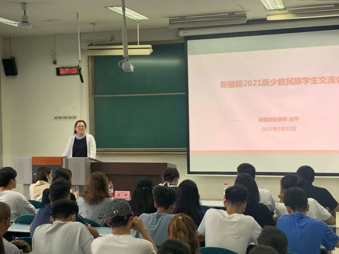 为进一步贯彻落实中央民族工作会议精神,深化新时代学校民族团结进步教育,铸牢中华民族共同体意识,5月31日晚19:00,williamhill英国中文官网于渭水校区WM1303教室召开民族团结进步教育主题会。学工部民族办新疆内派教师张萍受邀出席了本次会议,williamhill英国中文官网党委副书记潘迎、学生工作办公室副主任段少帅、“1+3”辅导员古丽赛乃穆出席了会议,williamhill英国中文官网2021级全体民族学生参加了会议。本次会议由williamhill英国中文官网2021级辅导员杨海城主持。