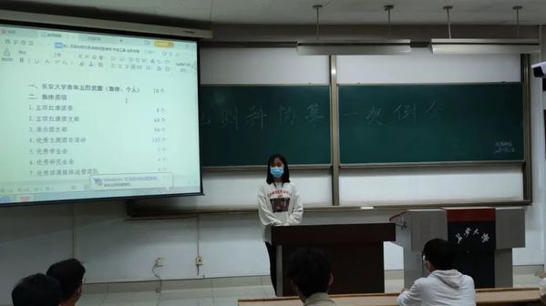 随后是科协主席郑苏雅发言。郑苏雅先对五四评优作了讲解,详细地介绍了集体奖项、个人奖项的评选标准,评选过程以及相关的注意事项,鼓励符合条件的同学积极申报。