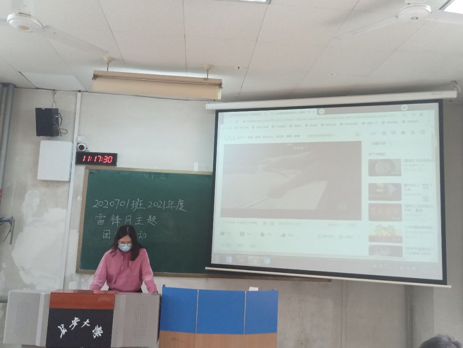 活动伊始,团支书徐子惠向同学们介绍了雷锋同志的生平。“雷锋同志享年22岁,但我们从他短暂的生命历程中见证了他高尚的道德品质和深刻的思想觉悟。无论是在工作上还是思想上,他一生都不曾停止追求进步,即使自己的生活拮据困顿,也始终把党和国家、人民群众的利益放在首位。”并播放《雷锋在1959》电影片段。
