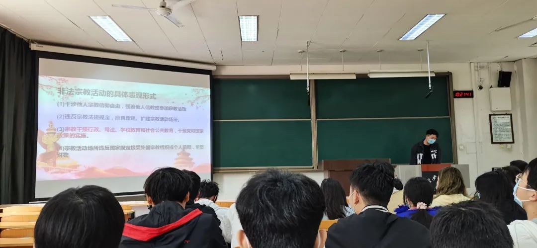 此次主题班会让同学们对学校相关的宗教政策及规定有了更明确的了解,对贯彻党的宗教基本方针、积极引导宗教与社会主义社会相适应、树立学生正确的宗教观宗教有重要意义。作为一名新时代的大学生,我们应努力学习科学知识,要勇敢肩负起时代赋予的重任,志存高远,脚踏实地,努力在实现中华民族伟大复兴的中国梦的生动实践中放飞青春梦想。