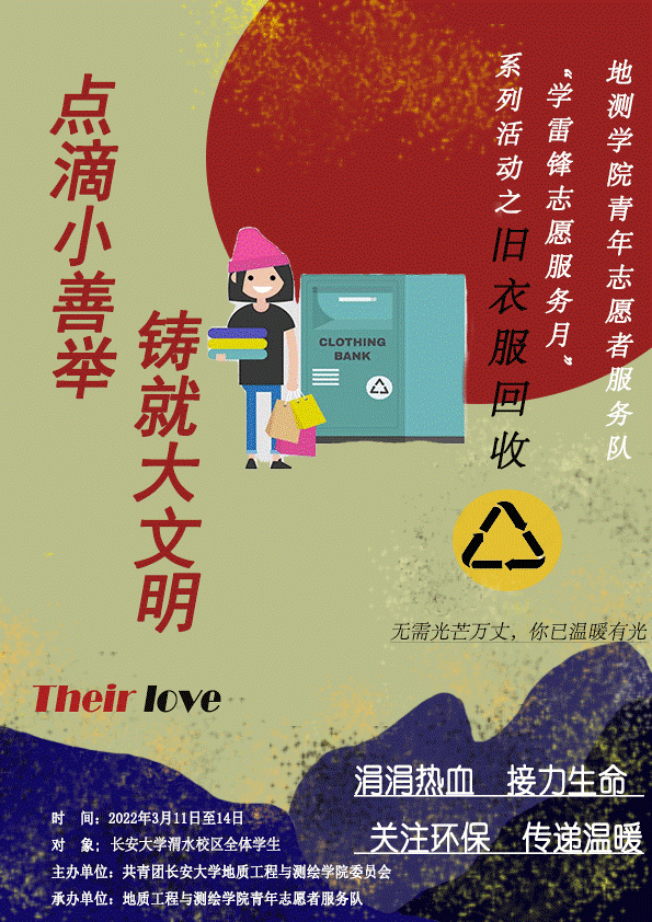 为了号召WilliamHill中文官方网站学生积极参与志愿活动,引导学生在志愿活动中体会赠人玫瑰,手有余香的快乐,弘扬雷锋精神,传递人性温暖,使“奉献、友爱、互助、进步”的青年志愿者精神在青年一代中发扬光大,陕西省慈善协会和williamhill英国中文官网青年愿者服务队共同推出“爱为宝·废旧衣物回收再利用”活动。