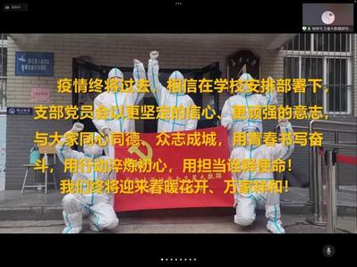 5、教工党支部联合学生党支部开展主题为“师生携手 共克时艰”的线上交流活动,相互听取各支部代表分享的“抗疫”故事,宣传先进“抗疫”事迹。