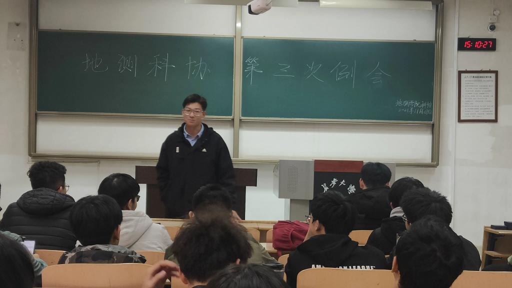 在工作总结环节中,科协主席和各部长总结了在过去一个月科协存在的共性问题及各部门在工作中存在的具体问题。实践部部长向新建强调了地测科协是个大家庭,各部门要加强联系,各部门人员要大大提高我们的工作效率。论坛部部长常建东则强调了合理地分配个人生活和工作时间的重要性。经过两位部长的发言,干事们深刻认识到沟通交流,团队协作的重要性,把“高效”两个字深深刻在大家脑海中。