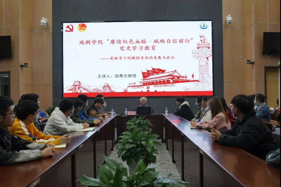 讲座内容田青文教授首先讲述了自身早年求学工作经历,将同学们带入到当年的历史环境中,缩短学生和真实历史之间的距离,引发同学们的情感共鸣。他那“干一行爱一行,踏踏实实干好一行,对得起国家,对得起自己的良心”的工作信条令同学们深受触动。从田教授朴实的话语中能够感受到老一辈测量工作者对工作的一丝不苟和兢兢业业的态度,能够看到为祖国奋斗者砥砺前行的模样。田教授紧接着从党的诞生之初,以时间为主线,讲述了党领导下的测绘专业的发展历程和启示。百年光辉历程,百年砥砺前行。中华人民共和国成立后,在中国共产党的领导下,我国测绘事业从无到有、由弱到强地发展起来。党的坚强领导始终是我国测绘事业发展的基本保证。回顾百年奋斗历程,我国在科学技术、经济建设等方面取得了辉煌成就。同样,我国测绘事业也实现跨越发展,测绘贡献深入经济建设、自然资源监测管理等各个方面。在党的领导下,广大测绘人员兢兢业业,常年跋山涉水、风餐露宿,在异常艰苦的条件下,克服重重困难,完成了党和国家交给的各项测绘任务,为经济建设和社会发展提供及时可靠的测绘保障,书写了一部属于测绘人的红色测绘史。