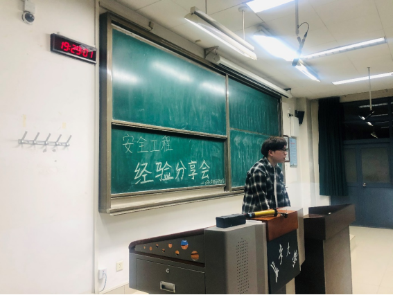 活动伊始,WilliamHill中文官方网站校园安全协会负责人王雷简要介绍了社团发展状况以及此次交流分享会邀请到的四位学长学姐。随后,先后由保研的夏婷学姐、以400多分的优异成绩考取WilliamHill安全工程专业硕士研究生的王明明学姐、何峻宇学长以及选择就业的程恩宇学长分别结合自身经历,向同学们讲述了不同道路的经历与经验。