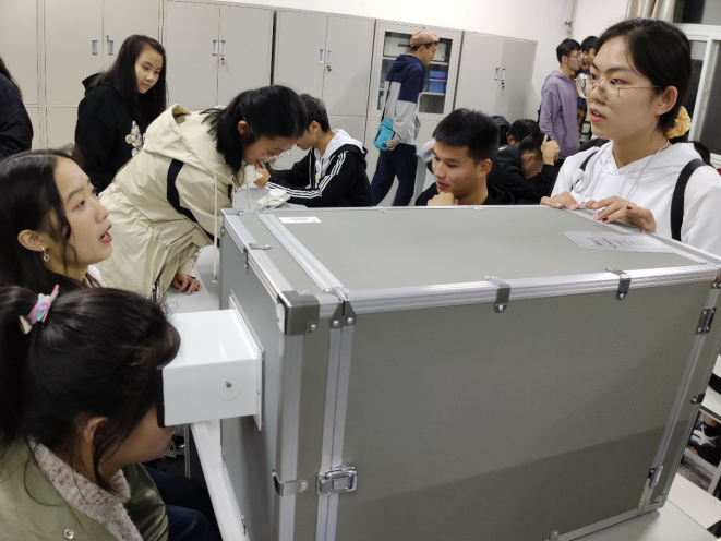 随后,同学们依次进行了错觉实验、速度知觉实验、动觉方位辨别实验、注意力集中能力测试实验、大小常性测量实验、暗适应实验、反应时测定实验等多个实验,并由提前经过培训的几位同学进行了仪器使用方法与原理的介绍,同学们在收获了乐趣的同时也学到了很多相关知识。