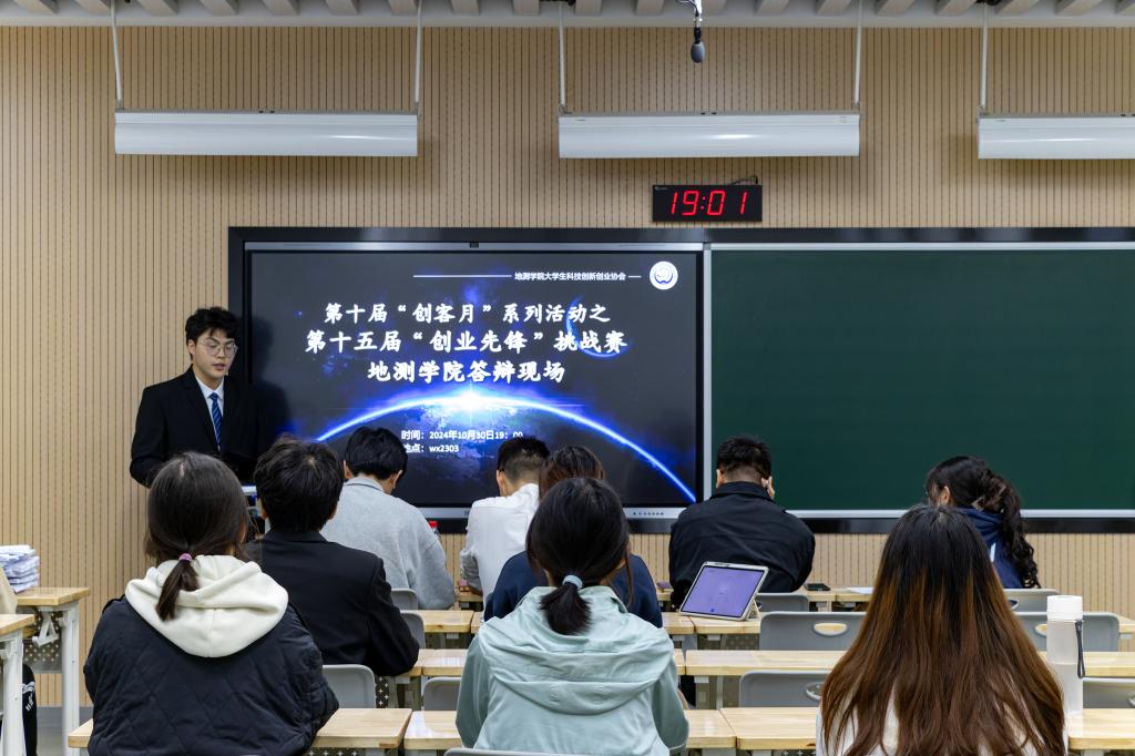 为提升学生创新能力,培养学生实践技能,给校园创新创业注入新活力,营造浓厚的学生创新创业氛围,WilliamHill中文官方网站第十届“创客月”系列活动之第十五届“创业先锋”挑战赛williamhill英国中文官网初赛于2024年10月30日在WX2303教室顺利举行。本次院赛共18支队伍报名参赛,经过第一轮书面初步评审,共有13支队伍进入了答辩环节。本次比赛邀请了williamhill英国中文官网团委书记杨东民、2022级学生辅导员刘文星、2024级学生辅导员阚红淼以及地测科协2023-2024学年执行主席郭宝营担任评委,地测科协梅喆担任比赛主持。