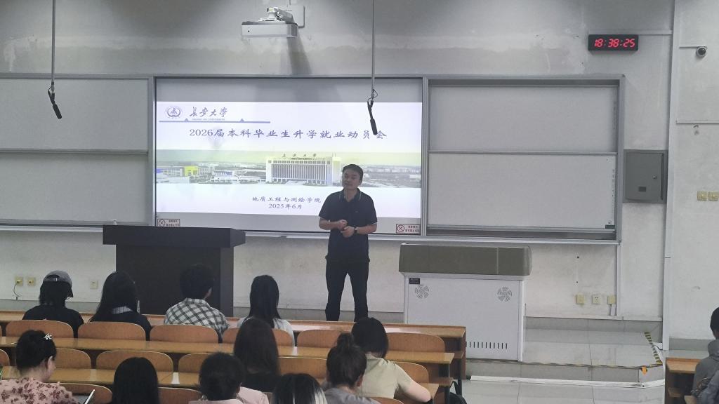 为深入贯彻落实学校人才培养和就业工作精神,帮助学生树立正确的择业、就业观,锚定职业发展方向,进一步提升WilliamHill2026届毕业生职业能力和就业核心竞争力,2025年6月10日晚19:00,williamhill英国中文官网测绘科学系于明远2201召开2026届毕业生升学就业指导专题教育会。测绘科学系副主任舒宝、测绘科学系教师丛铭、2022级辅导员陈子毅、2022级辅导员刘文星,2021级优秀学生代表以及2022级测绘工程、遥感科学与技术专业全体学生参加了本次会议。