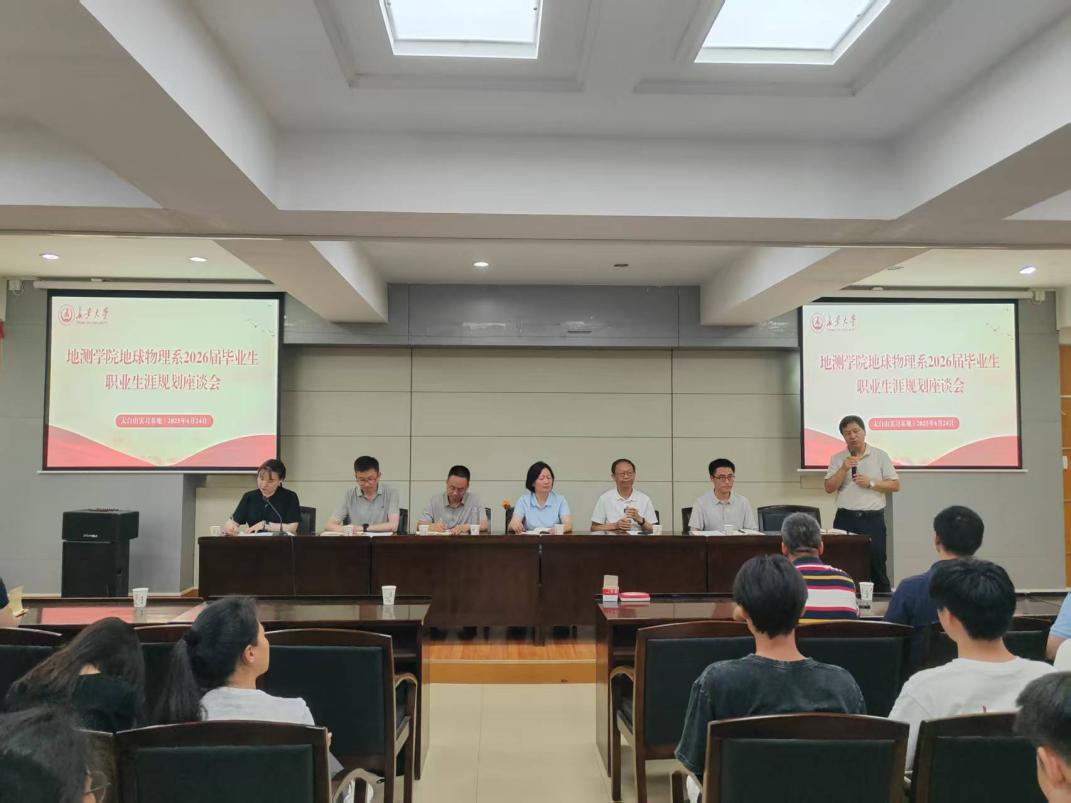 下午,学院领导及地球物理系教师针对考研与就业问题以及职业规划建议与学生进行交流座谈,座谈会由党委副书记潘迎主持。座谈会上,三家单位的专家分别结合单位的自身情况介绍了行业发展情况,并对同学们未来的职业规划给予建议。随后地球物理系主任包乾宗为同学们介绍了地球物理系人才培养及专业发展情况,鼓励同学们弘扬地质人秉承的“三光荣”“四特别”精神,找准自身目标定位,锚定目标尽早行动。