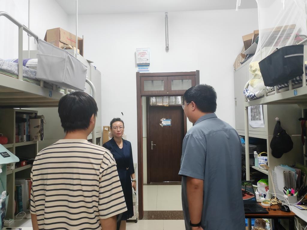 走访过程中,潘迎仔细查看了宿舍环境,叮嘱同学们要保持宿舍整洁卫生,做好个人内务整理,营造良好的生活环境,并仔细检查宿舍用电、消防等安全隐患,提醒同学们离校前务必关闭电源、锁好门窗,妥善保管个人贵重物品。