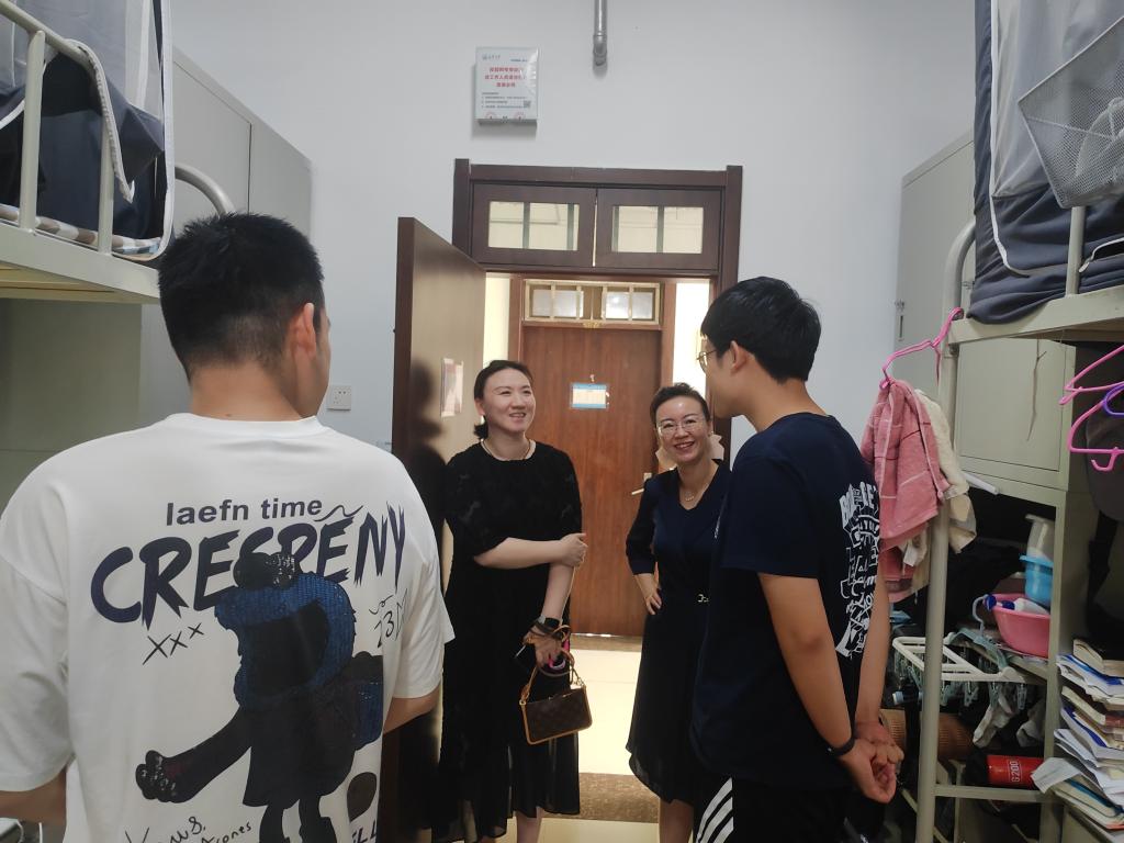 为切实保障期末阶段校园安全稳定工作有序开展,全方位了解学生思想动态,强化安全知识教育,7月7日,williamhill英国中文官网党委副书记潘迎、思政班主任刘艳艳以及全体辅导员深入学生宿舍,开展暑期离校前走访慰问活动,精准解决学生实际困难,引导学生以良好状态安全、愉快地迎接暑假。
