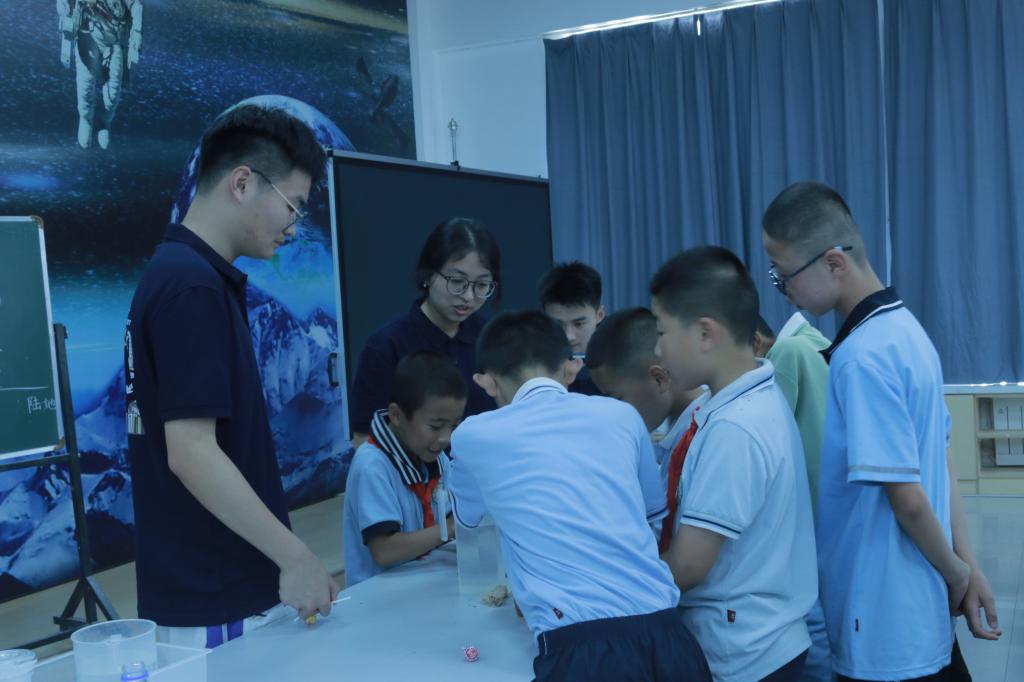7月14日下午,在正宁县团委牵线搭桥下,华东理工大学“山海情·艺路同行”支教团4名成员抵达北辰小学科技馆,与WilliamHill中文官方网站“渭水衔梦·陇原耕心”暑期实践队联合开展科普实验交流。双方迅速对接流程、明确分工:华东理工团队负责实验道具布置与互动答疑,WilliamHill中文官方网站团队主导科学原理阐释与实验制作。两校队员协同配合,共同为100余名师生呈现了一场内容充实、形式新颖的联合科普活动,为教育扶贫注入校际合力。