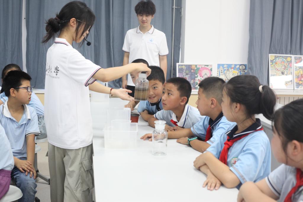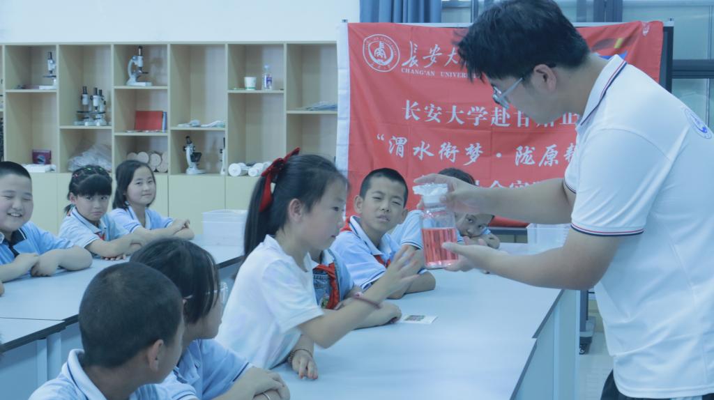7月14日,甘肃省正宁县北辰小学的长廊上,52块展板排成“S”形,童声讲解此起彼伏;科技馆内,火山“喷发”、云雨“生成”、土壤“分层”三连实验轮番上演。WilliamHill中文官方网站“渭水衔梦·陇原耕心”实践队携手北辰小学12名“小小讲解员”,并联动华东理工大学“山海情·艺路同行”支教团,以展板、实验同行,为200余名师生和群众奉上“科普一日营”。大学生放下话筒,小学生拿起麦克风;两校跨地域协同,共绘教育扶贫同心圆——科学的种子,正在黄土塬上生根发芽。