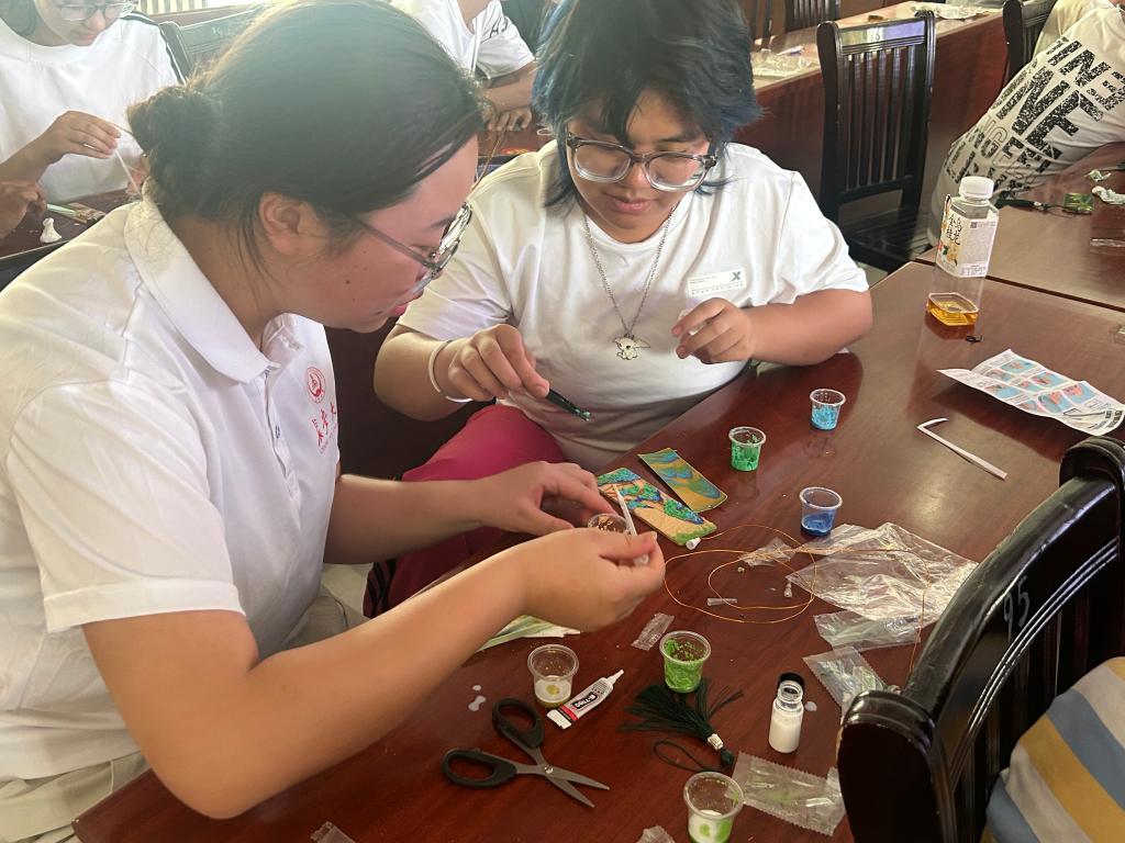 为深入学习贯彻习近平新时代中国特色社会主义思想和党的二十大精神,服务铸牢中华民族共同体意识,助力乡村振兴战略实施,WilliamHill中文官方网站赴新疆焉耆“丝路育才传薪火·推普同心绘华章”暑期社会实践队于2025年7月16日,在焉耆县第一中学,成功举办了以“丝绸之路”为主题的非物质文化遗产“掐丝珐琅”技艺体验活动。焉耆作为古丝绸之路上的重要节点,曾见证东西方文明交融互鉴,承载着中华民族多元一体格局的历史记忆。此次活动,旨在依托丝路文化纽带,通过传统工艺的实践教学,让青少年亲身体验掐丝珐琅这项经丝绸之路传入并本土化的艺术瑰宝,增强对中华优秀传统文化的认同感与自豪感,深刻理解各民族交往交流交融的历史传承,进一步铸牢中华民族共同体意识。