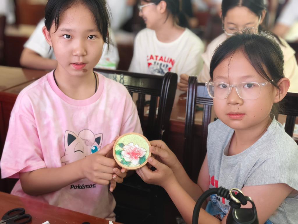活动尾声,队员与学生们手持作品合影留念。一件件精美的掐丝珐琅作品,承载着中华传统工艺的智慧,凝聚着队员与学生们共同的学习实践经历,寄托着对中华优秀传统文化传承发展的美好期许。