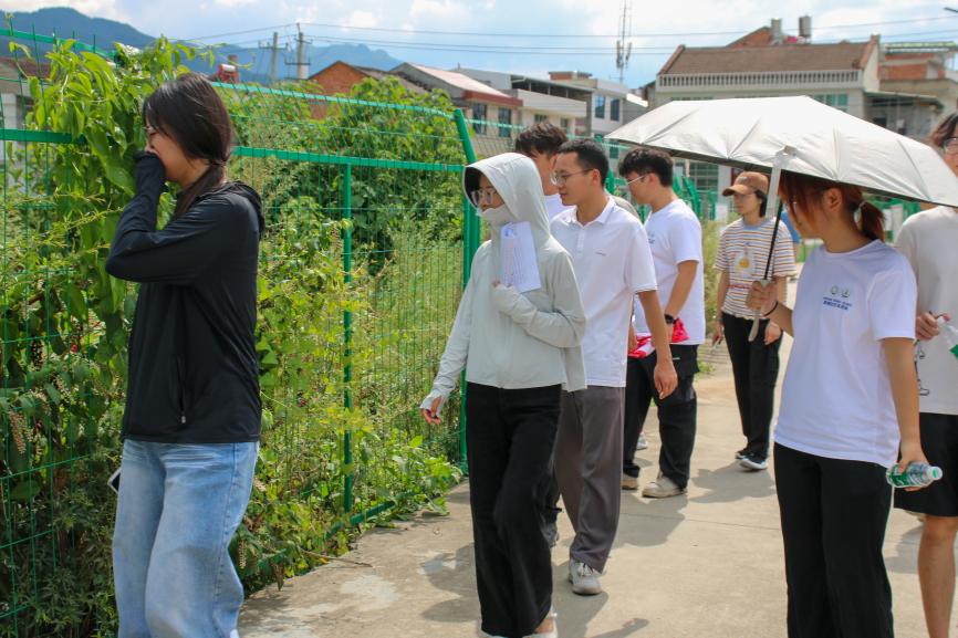了解完刘营村基本情况后,队员们在胡旋的带领下来到了露天药园。依托本地气候土壤优势,中药业也成为了村内的特色产业。高校团队带来的精准种植技术、土壤改良方案,让过去“凭经验种药”的村民有了科学指南。