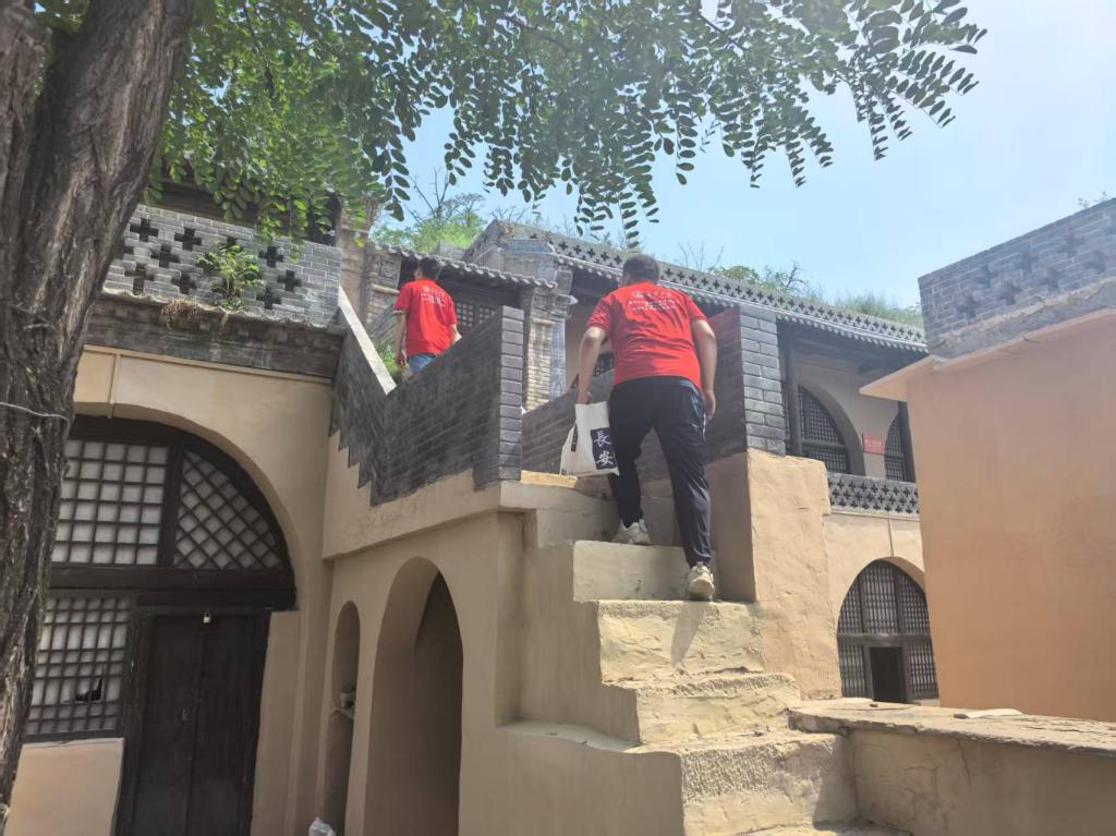 在通往白明善烈士故居的古朴黄土小路上,实践队踏着承载历史的足迹缓缓前行。小路两侧,赭红色的墙壁无言矗立,仿佛凝固的岁月烽烟;几株苍劲的老榆在院角盘踞,斑驳树皮间迸出嫩枝,宛若先人未熄的信念在岁月里抽条生发。实践队围绕小路的地形环境与历史关联性展开现场讨论,想象着当年青年白明善如何从这条山径走向广阔的革命天地,又如何带着信仰回到故乡播撒火种。穿行于这条连接过去与现在的“初心之路”,队员曹钤钤深刻体悟到:“正是这方水土的厚重与抗争基因,铸就了烈士坚如磐石的革命品性。”
