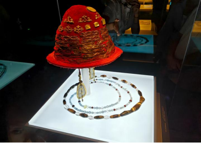 步入馆内,《农耕、畜牧·碰撞、交融——鄂尔多斯通史陈列》展厅映入眼帘。丰富多样的展品有序陈列,从古老的生产工具到精美的手工艺品,从古朴的陶器到华丽的服饰,生动展现了鄂尔多斯地区农耕文明与游牧文明相互碰撞、深度融合的历史画卷。实践队队员们跟随讲解员的步伐穿梭于各个展柜之间驻足,深刻感受到民族文化交融所产生的独特魅力和强大生命力,对这片土地孕育出的灿烂文化也有了更深层次的理解。