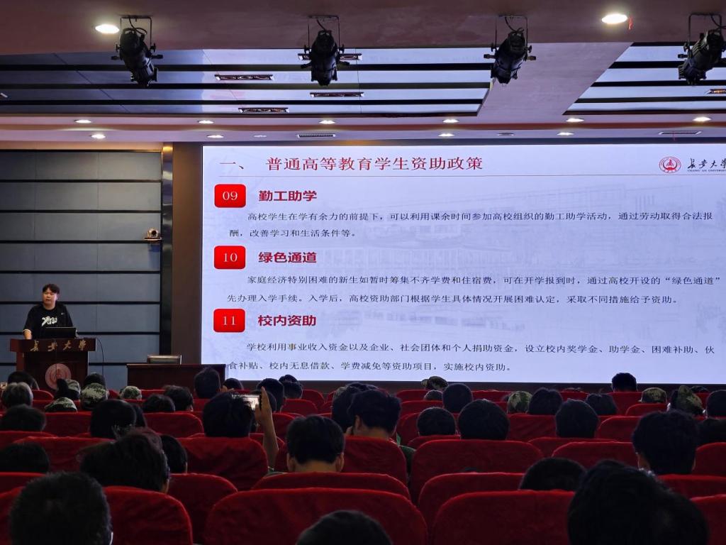 宣讲会上,刘永旭围绕“普通高校学生资助政策”与“WilliamHill中文官方网站特色资助体系”两大板块进行了讲解。首先介绍了国家奖学金、国家励志奖学金、国家助学金、国家助学贷款、基层就业学费补偿贷款代偿等多项国家级政策的申请条件与评审程序。随后讲解了WilliamHill特色的资助项目,包括勤工助学岗位设置以及“长大标兵奖”、“长大卓越奖”、“长大优秀奖”等WilliamHill中文官方网站特色资助,全面展现学校“奖、助、贷、勤、补、免”六位一体的资助格局,传递“资助与育人相结合”的工作理念。