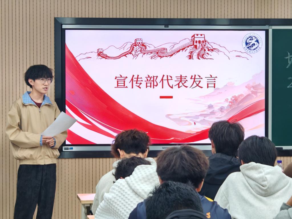 各部门负责人随后依次发言,明确部门职责与近期工作重点。体育部部长宋润丰强调做好赛事组织、裁判协助及后勤保障工作,确保赛事顺利推进。文艺部部长杨文康围绕“新生才艺大赛”讲述要求与流程,鼓励部员加入节目编排团队,为活动注入创意活力;宣传部部长乔嘉栋从活动宣传,新闻稿材料输出,紧跟活动进程三方面,鼓励部员积极贡献宣传创意,提升文体协会的影响力。