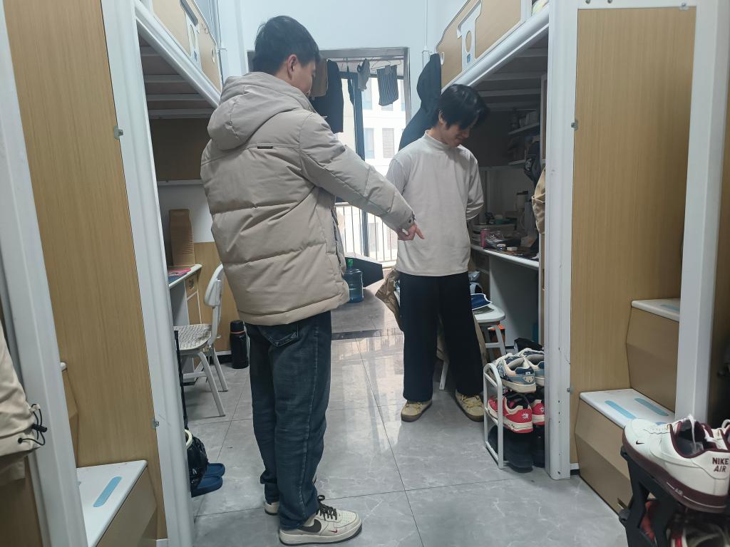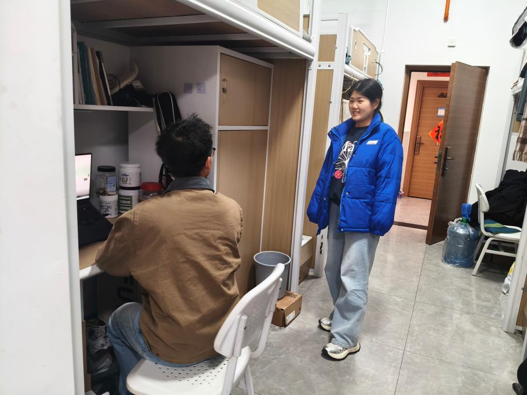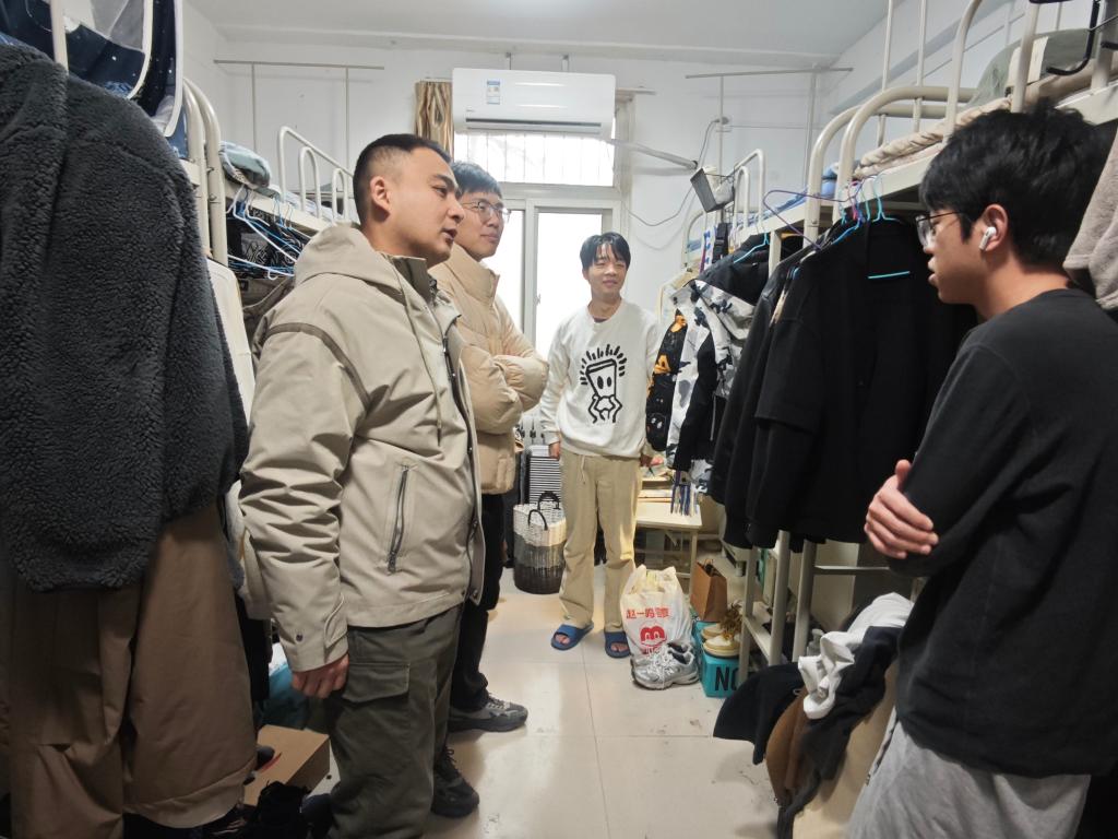 走访过程中,老师们细致查看宿舍用电安全及消防通道状况,对发现的问题现场提出整改意见,强调要杜绝违规电器、保持通道畅通。围绕“构建文明安全宿舍环境”主题,老师们叮嘱同学们自觉遵守宿舍管理规定,增强安全防范意识,共同维护整洁、和谐、有序的生活空间。