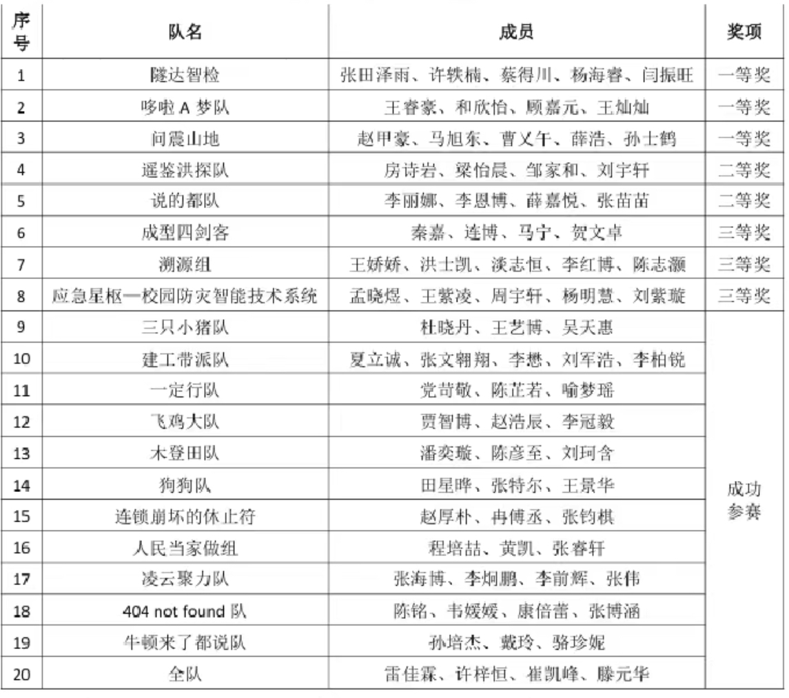 此次大赛的成功举办,不仅培养了同学们“以专业铸就防线,以创新赋能安宁”的意识,更加强了学生的创新实践能力。希望同学们在未来能够秉持这份创新精神,用专业知识和创新能力赋能防灾减灾工作,推动方案从“纸上设计”走向“落地应用”,切实践行科技惠民的宗旨。
