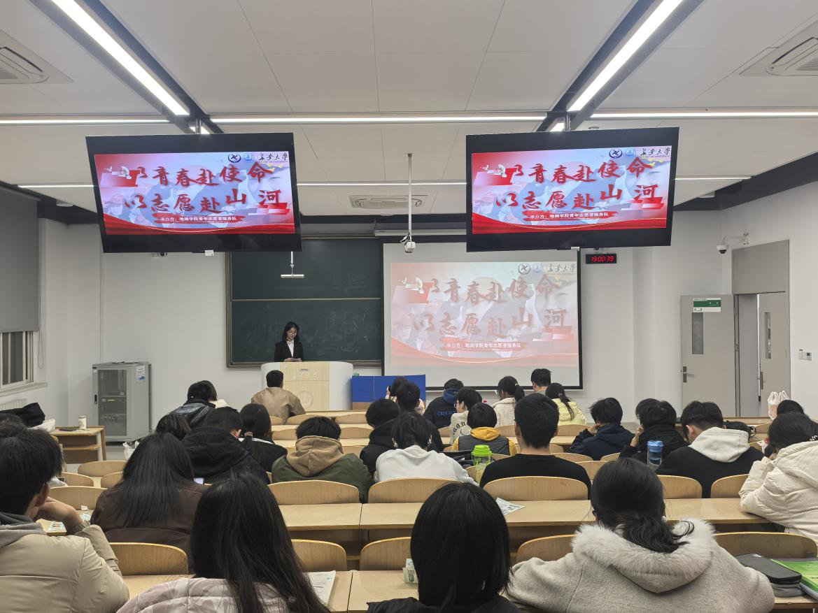 12月19日晚,williamhill英国中文官网青年志愿者服务队于WH1306举办“以青春赴使命,以志愿赴山河”国际志愿日主题宣讲活动。活动邀请张雅妮、侯晓庆、苏东辉三位优秀青年志愿者,以亲身经历为笔,绘就“把青春写在中国大地上”的壮丽图景,为现场百余名学生们带来了一场有温度、有深度的精神盛宴。