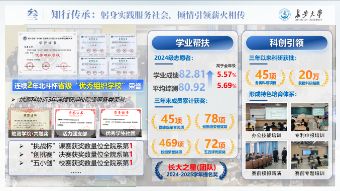 他坚持以高水平学科竞赛锤炼跨学科能力,作为队长斩获2024年全国大学生数学建模竞赛全国一等奖(近两届全校唯一)、第十九届“挑战杯”课外赛主体赛全国三等奖,并获得第十四届“北斗杯”全国一等奖(本科组赛道全国唯一),刷新学校在该赛事中的历史最好成绩。团队也荣获“长大标兵奖·长大之星(团队)”荣誉称号。