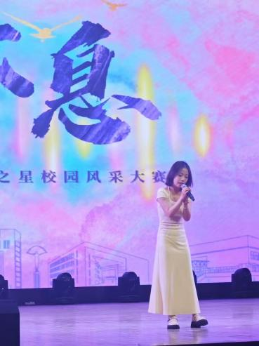 任职大学生艺术团歌唱部部长期间,无论是迎新季里,8次站上院级迎新活动的舞台,用清亮歌声消解新生的陌生与不安;还是在聚光灯下,13次参与校迎新晚会、青春诗会、毕业歌会等校级重大文艺活动,以深情演唱陪伴师生度过难忘时刻。我始终以“用歌声传递温暖、以热爱践行奉献”为初心,积极投身校园文化建设的每一个角落。